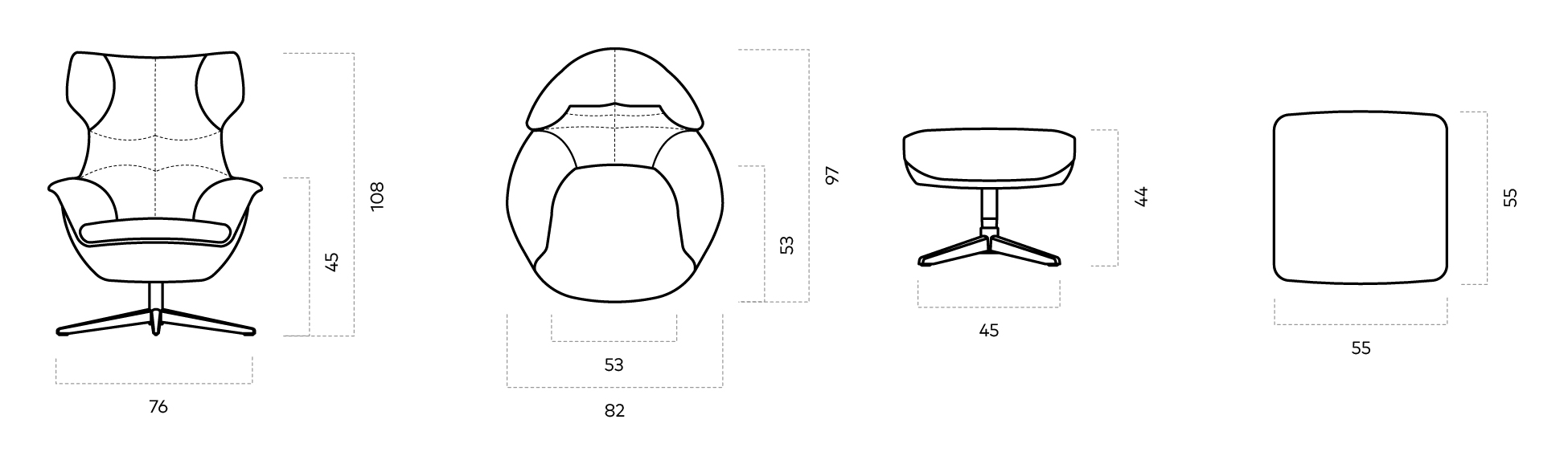 Oblé línie, ktoré lemuje precízne šitie potešia nielen zrak, ale i znásobia pocit luxusného sedenia s vyloženými nohami po celom dni. Vďaka kompaktnému tvaru si môže toto kreslo dovoliť i celkom maličká domácnosť.
